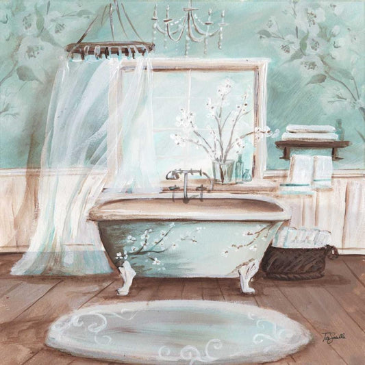 Aqua Blossom Bath I Gold Ornate Wood Framed Art Print with Double Matting by Tre Sorelle Studios