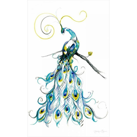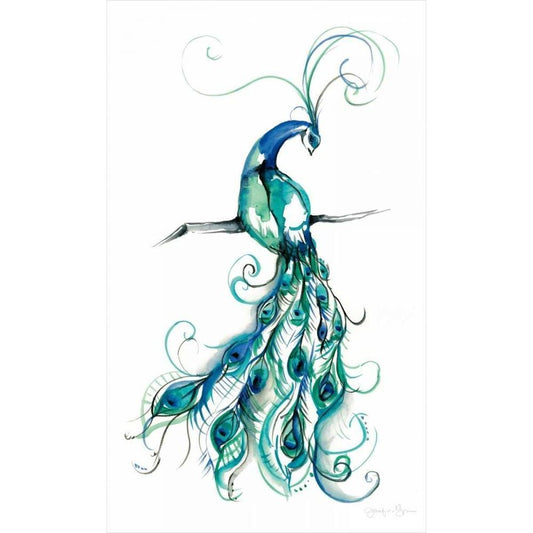 Aquarelle Peacock II Gold Ornate Wood Framed Art Print with Double Matting by Goldberger, Jennifer