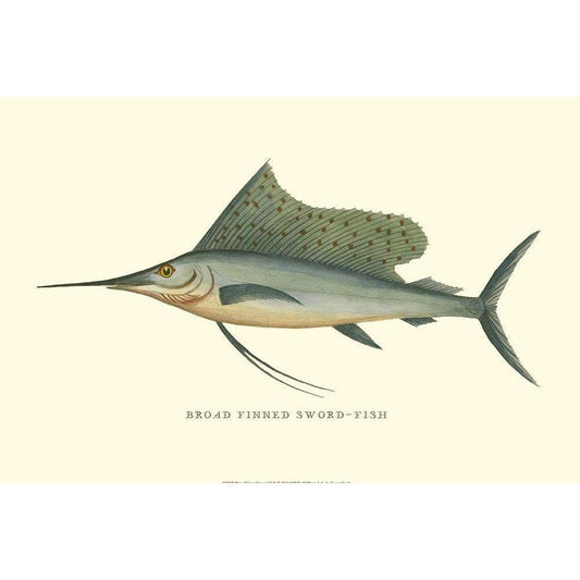 Broad Finned Sword-Fish Gold Ornate Wood Framed Art Print with Double Matting by Vision Studio