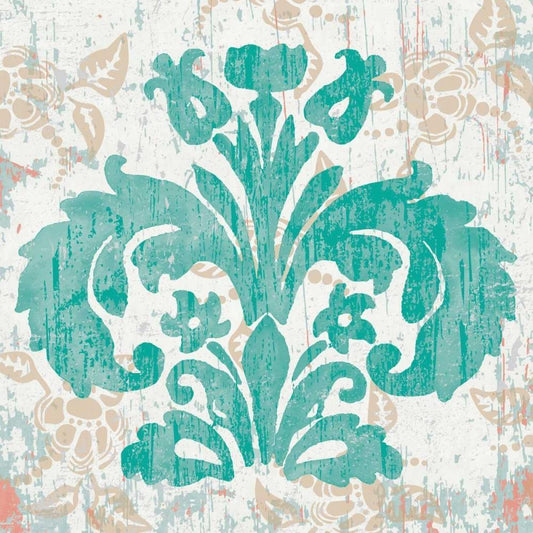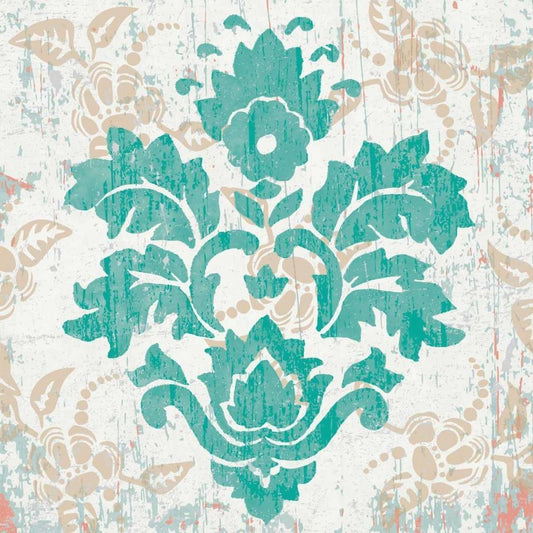 Damask Stamp III Gold Ornate Wood Framed Art Print with Double Matting by Mark, Leslie