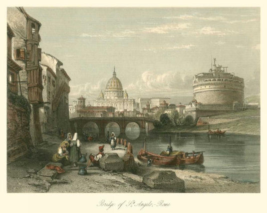 Bridge of St. Angelo Rome Black Ornate Wood Framed Art Print with Double Matting by Mayor Irton