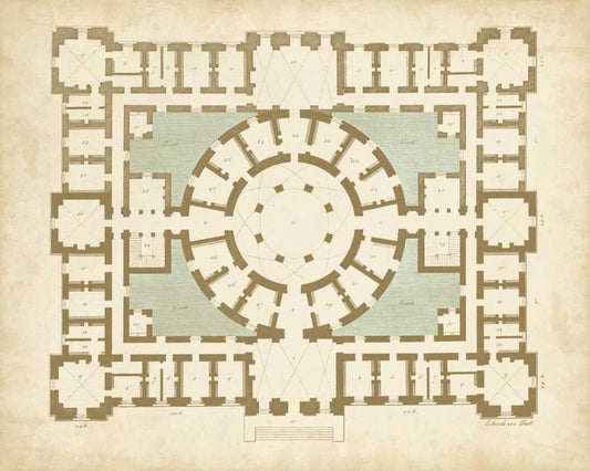 Plan in Taupe and Spa II Black Ornate Wood Framed Art Print with Double Matting by Vision Studio