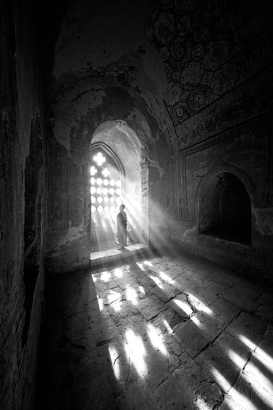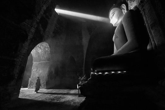 The Great Buddha White Modern Wood Framed Art Print with Double Matting by Song, Gunarto