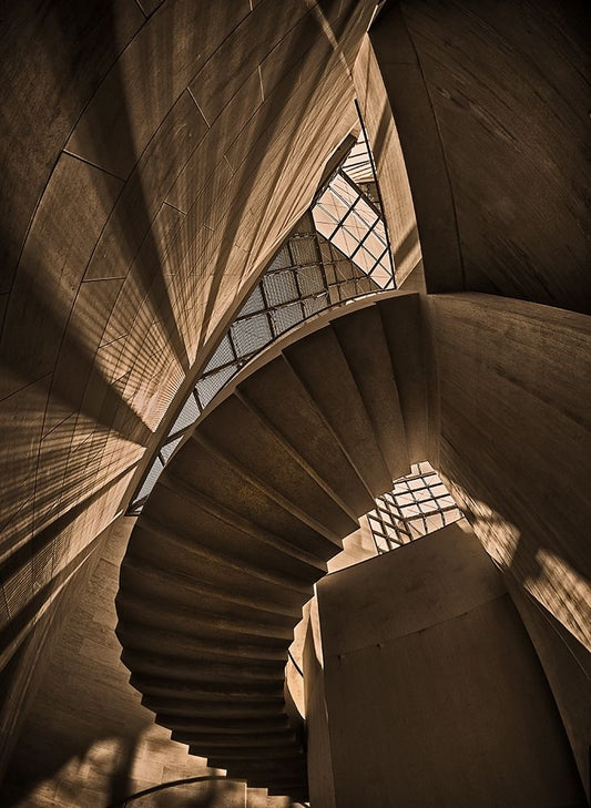 Triple Espiral White Modern Wood Framed Art Print with Double Matting by Revuelto, David