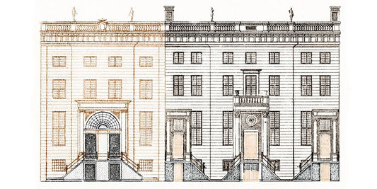 Graphic Building And Plan IV Black Ornate Wood Framed Art Print with Double Matting by Gibbs, James