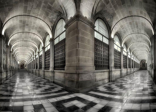 The Corridors Of The Escorial White Modern Wood Framed Art Print with Double Matting by Osuna, Fran