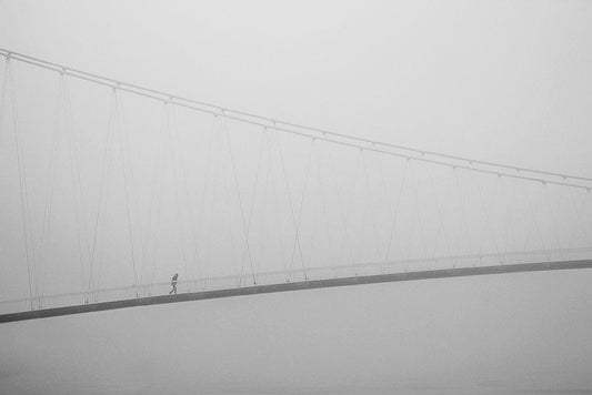 Brooklyn Bridge White Modern Wood Framed Art Print with Double Matting by De La, Javier