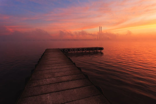 Top Of The Sunsets White Modern Wood Framed Art Print with Double Matting by De La, Javier
