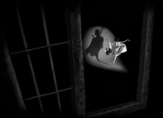 See My Shadow White Modern Wood Framed Art Print with Double Matting by Ali Surachman, Aman