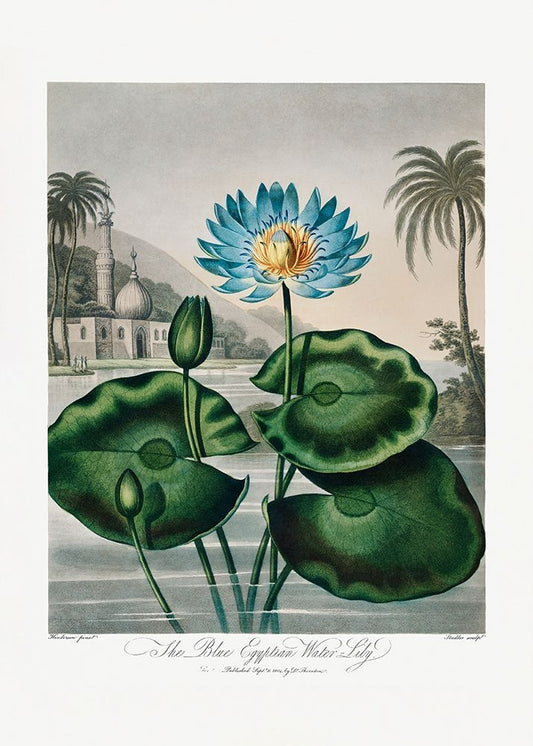 The Blue Egyptian Water-Lily from The Temple of Flora (1807) White Modern Wood Framed Art Print with Double Matting by Pictufy