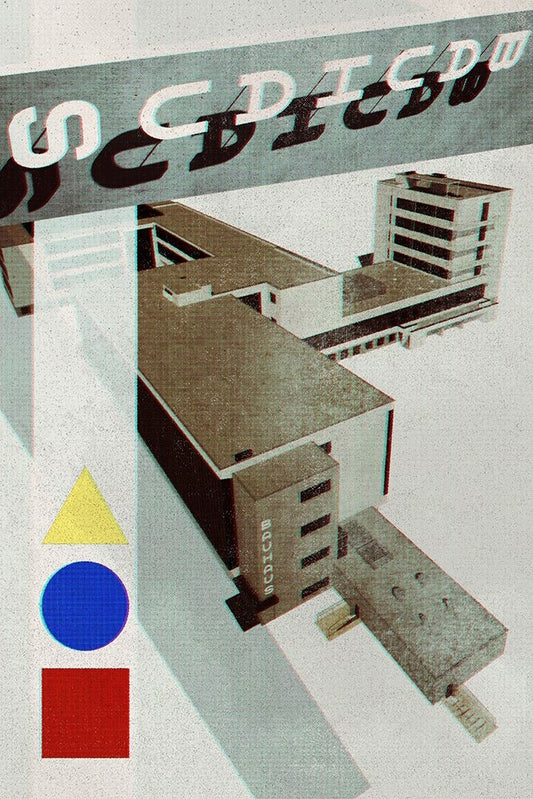 Bauhaus Dessau architecture in vintage magazine style White Modern Wood Framed Art Print with Double Matting by Laiz Blursbyai, Rosana