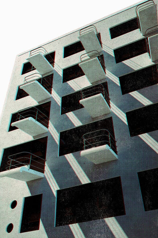 Bauhaus Dessau architecture in vintage magazine style VIII White Modern Wood Framed Art Print with Double Matting by Laiz Blursbyai, Rosana