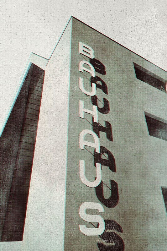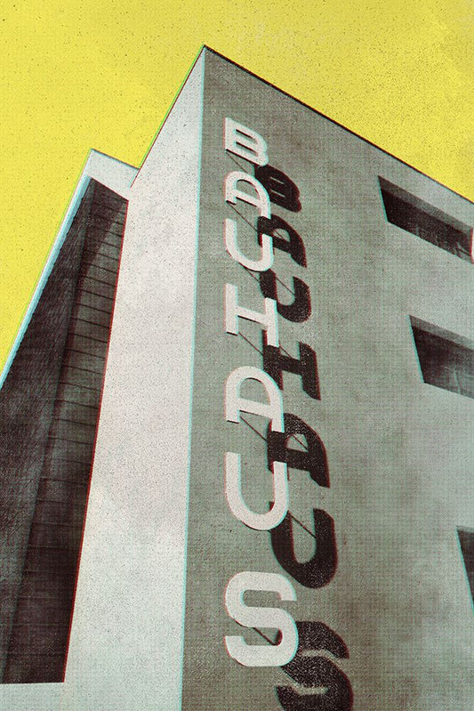 Bauhaus Dessau architecture in vintage magazine style I White Modern Wood Framed Art Print with Double Matting by Laiz Blursbyai, Rosana