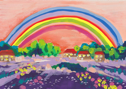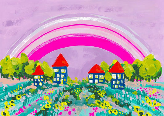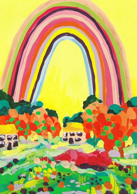 Countryside Rainbow Yellow White Modern Wood Framed Art Print with Double Matting by Zwara, Ania