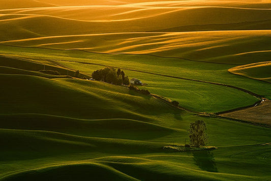 Palouse Wheat Fields White Modern Wood Framed Art Print with Double Matting by Dickau, Kristel