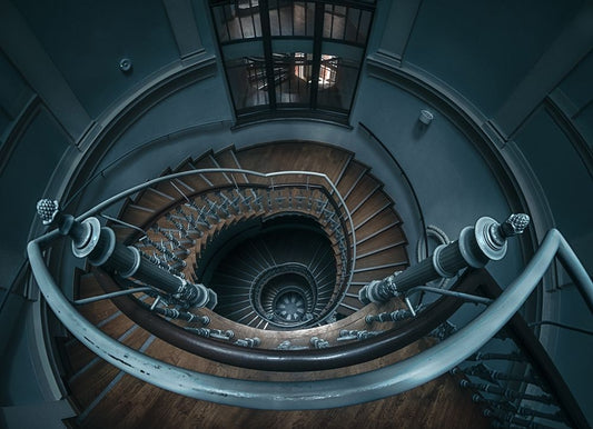 Stairs 7 White Modern Wood Framed Art Print with Double Matting by Zhou, Steven