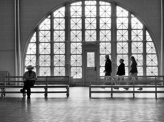 Heavy walking White Modern Wood Framed Art Print with Double Matting by Uhrin, Milan