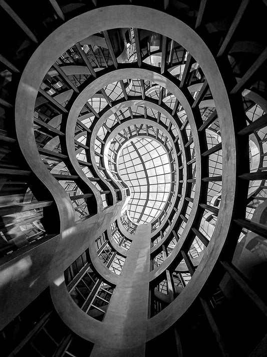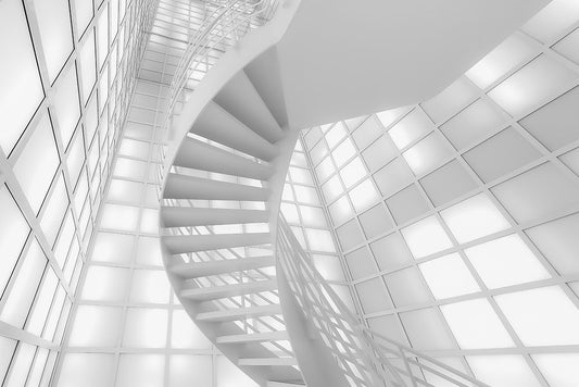 Stairs in White White Modern Wood Framed Art Print with Double Matting by Bauer, Andreas