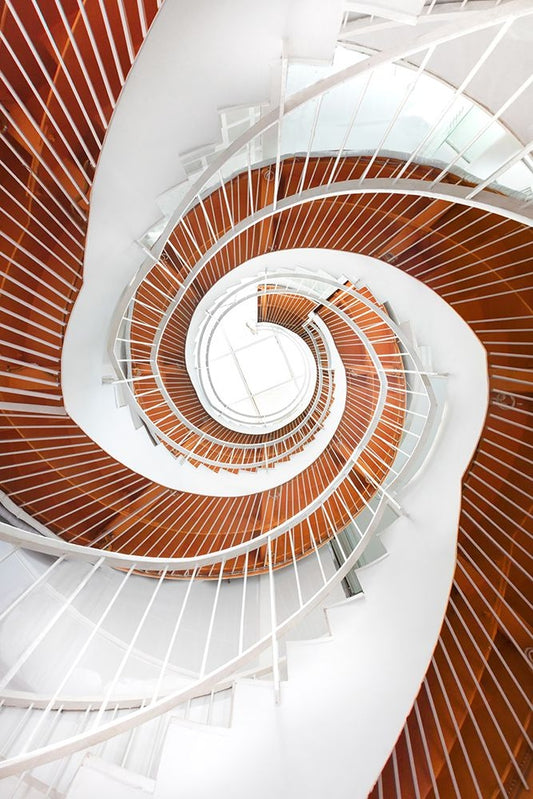 spiral stairs White Modern Wood Framed Art Print with Double Matting by Wang, Peiyin