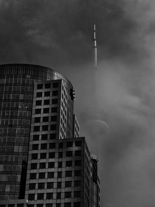 Downtown Toronto Fogfest No 7 White Modern Wood Framed Art Print with Double Matting by Carson, Brian