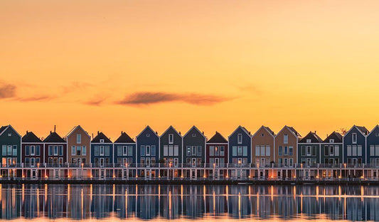 Cabins White Modern Wood Framed Art Print with Double Matting by Christensen, Andreas