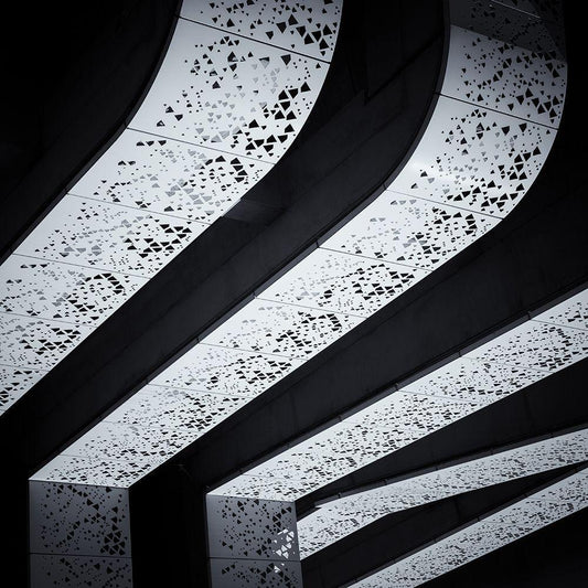 Car Park Rhapsody White Modern Wood Framed Art Print with Double Matting by Van De, Jeroen