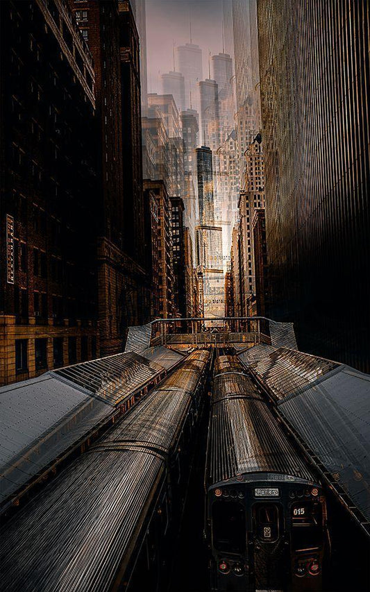 Chicago Station 2 White Modern Wood Framed Art Print with Double Matting by Chiriaco, Carmine