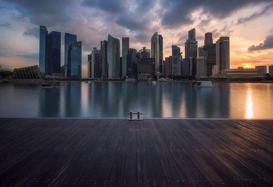 City Dock White Modern Wood Framed Art Print with Double Matting by Vandewalle, Richard