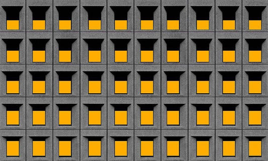 Yellow Squares White Modern Wood Framed Art Print with Double Matting by Schuster, Inge