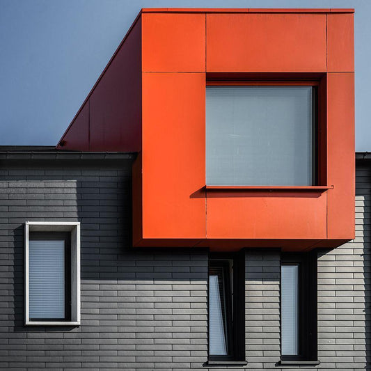 Orange Hideout White Modern Wood Framed Art Print with Double Matting by Vangindertael, Luc
