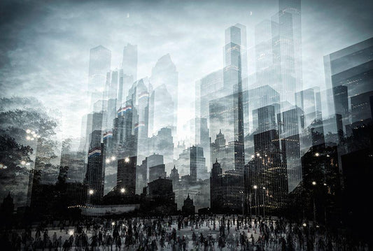 Metal Downtown L.A. White Modern Wood Framed Art Print with Double Matting by Parejo, Jose