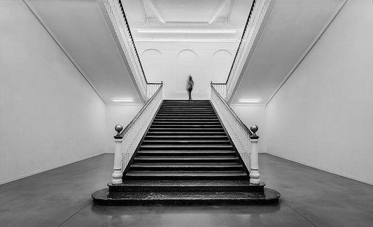 Tabakalera White Modern Wood Framed Art Print with Double Matting by Perez, Ritxard