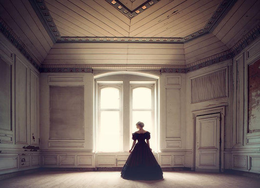 The Goodbye Girl ....Leaving White Modern Wood Framed Art Print with Double Matting by Bland, Richard