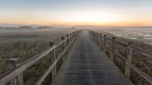 Morning Walk. White Modern Wood Framed Art Print with Double Matting by Londal, Leif