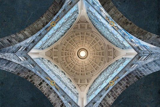Prague Sun. White Modern Wood Framed Art Print with Double Matting by Pablo De, Juan