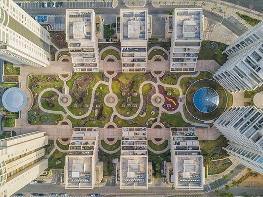 Urban Curves White Modern Wood Framed Art Print with Double Matting by Adar, Or