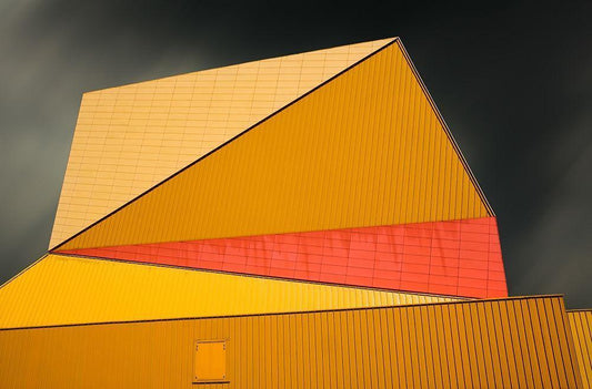 The yellow roof White Modern Wood Framed Art Print with Double Matting by Claes, Gilbert
