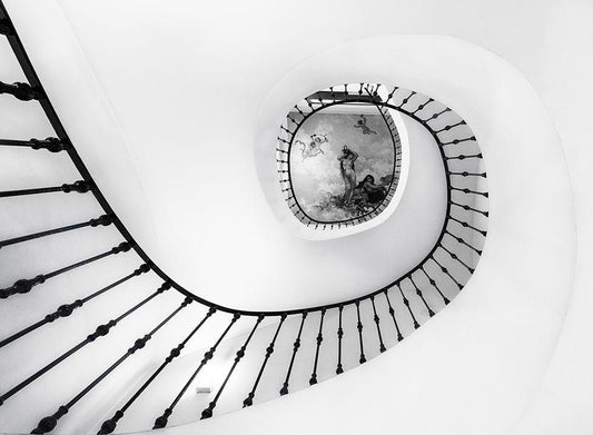 La Escalera White Modern Wood Framed Art Print with Double Matting by Antonio Trivino, Jose