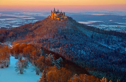 Hohenzollern In Winter Mood White Modern Wood Framed Art Print with Double Matting by Schumacher, Nicolas