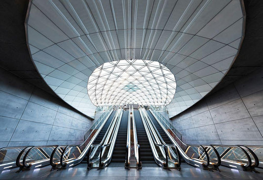 Malmo Station White Modern Wood Framed Art Print with Double Matting by Lindsten, Christian