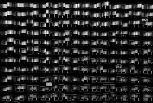 Blinds in black and white White Modern Wood Framed Art Print with Double Matting by Schuster, Inge