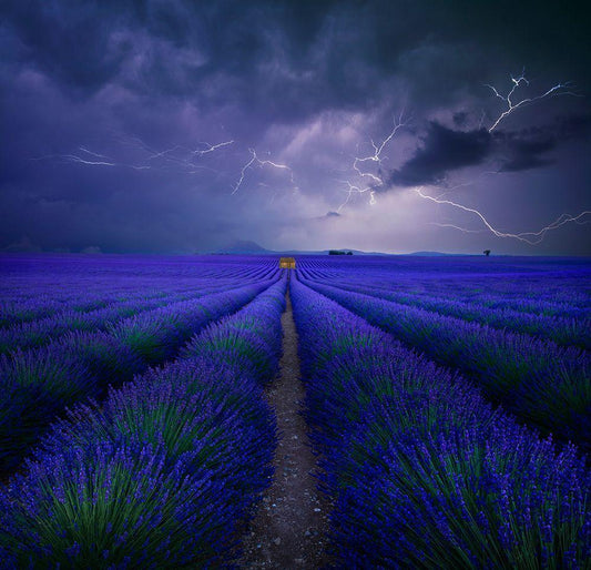 Wetter Im Lavendelfeld White Modern Wood Framed Art Print with Double Matting by Schumacher, Nicolas