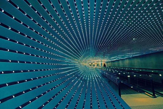 Blue Tunnel White Modern Wood Framed Art Print with Double Matting by V Ajanel, Oscar