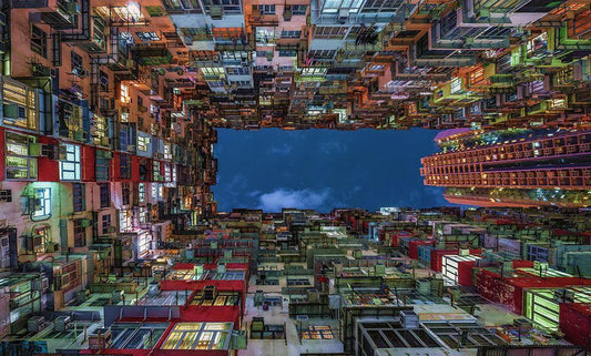 Shanghai In The Fog From Above White Modern Wood Framed Art Print with Double Matting by Huang, Stan