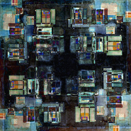 The House Under The Moonlight White Modern Wood Framed Art Print with Double Matting by De La, Javier