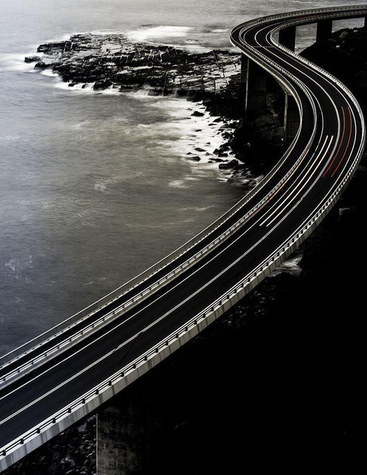 Downhill White Modern Wood Framed Art Print with Double Matting by Minaeian, Ehsan