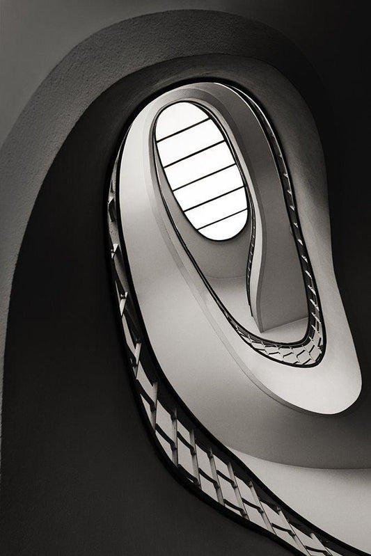 Stairs White Modern Wood Framed Art Print with Double Matting by Mallus, Nicolas
