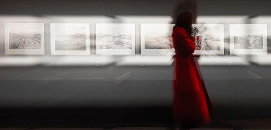 The Woman With The Red Coat White Modern Wood Framed Art Print with Double Matting by Bartagnan