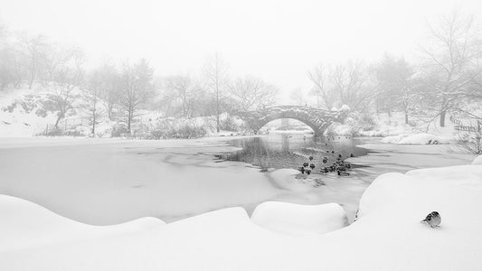 The first snow of central park White Modern Wood Framed Art Print with Double Matting by Menghuailin