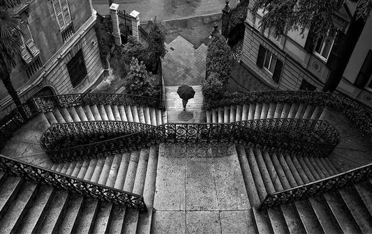Scalinata Poli White Modern Wood Framed Art Print with Double Matting by Montemagno, Domenico